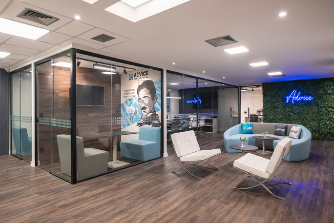 Escritório da empresa Advice localizado em São Paulo. Com o conceito de trabalho híbrido estabelecido, a unidade da Av. Paulista passou por uma reformulação, adequando os espaços para recepcionar clientes, diretores e colaboradores, com uma nova identidade, mais descontraída e alinhada com a nova filosofia da empresa.